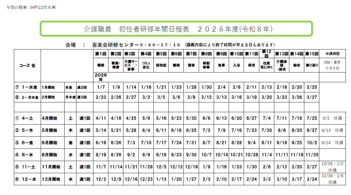 | 受講期間 | 下記年間日程表参照 |